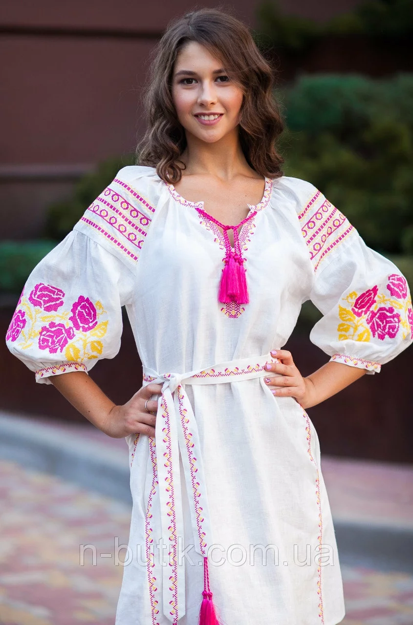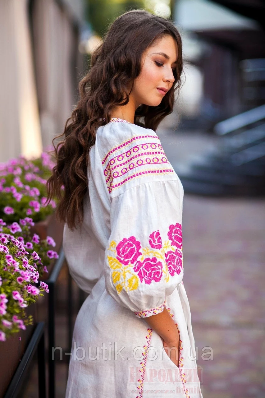 Белое вышитое платье в этно стиле