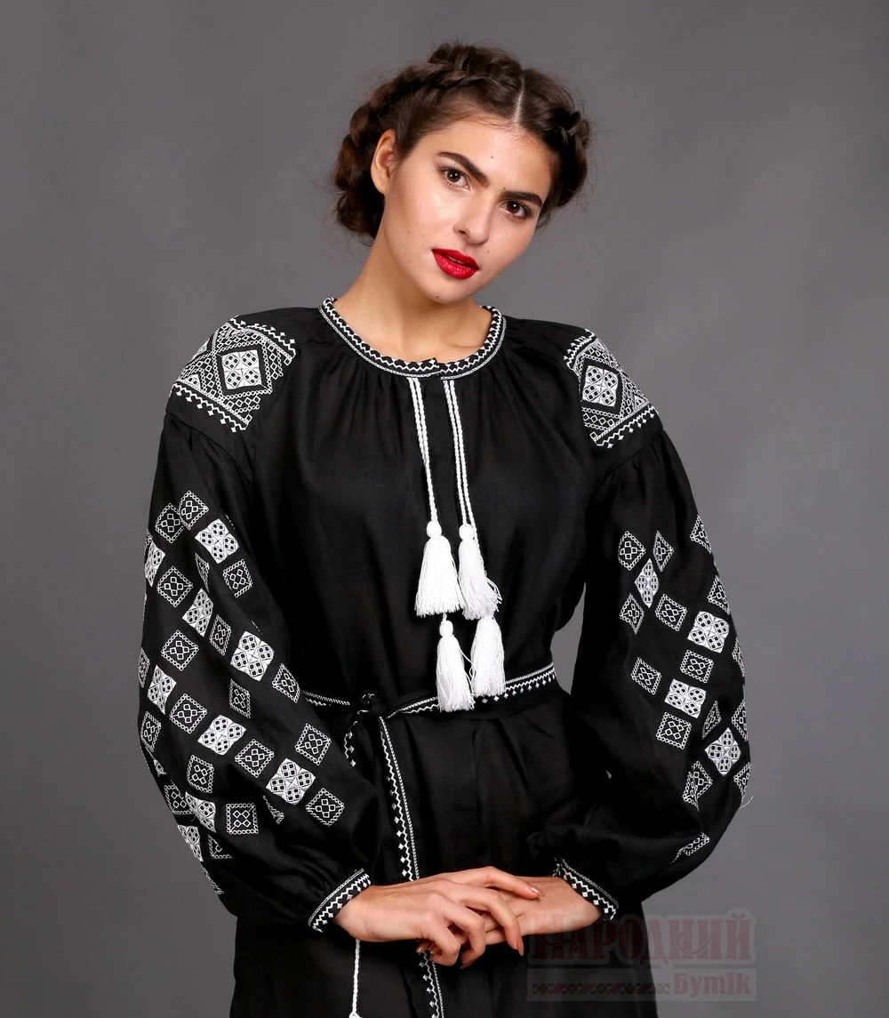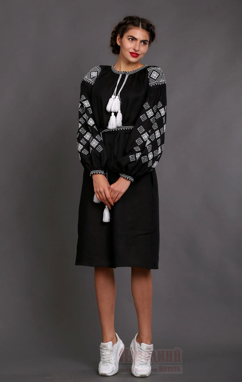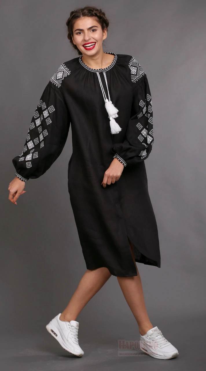 Женское черное льняное с вышивкой