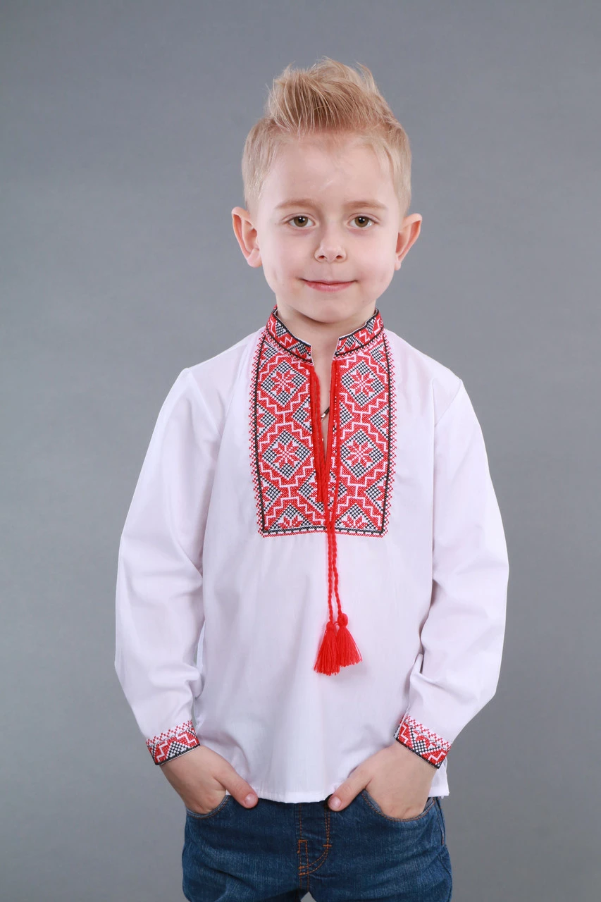 Детская вышиванка на мальчика, красно-черный узор Собственное производство , 104