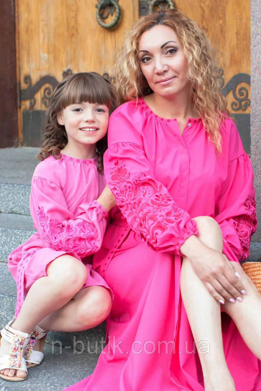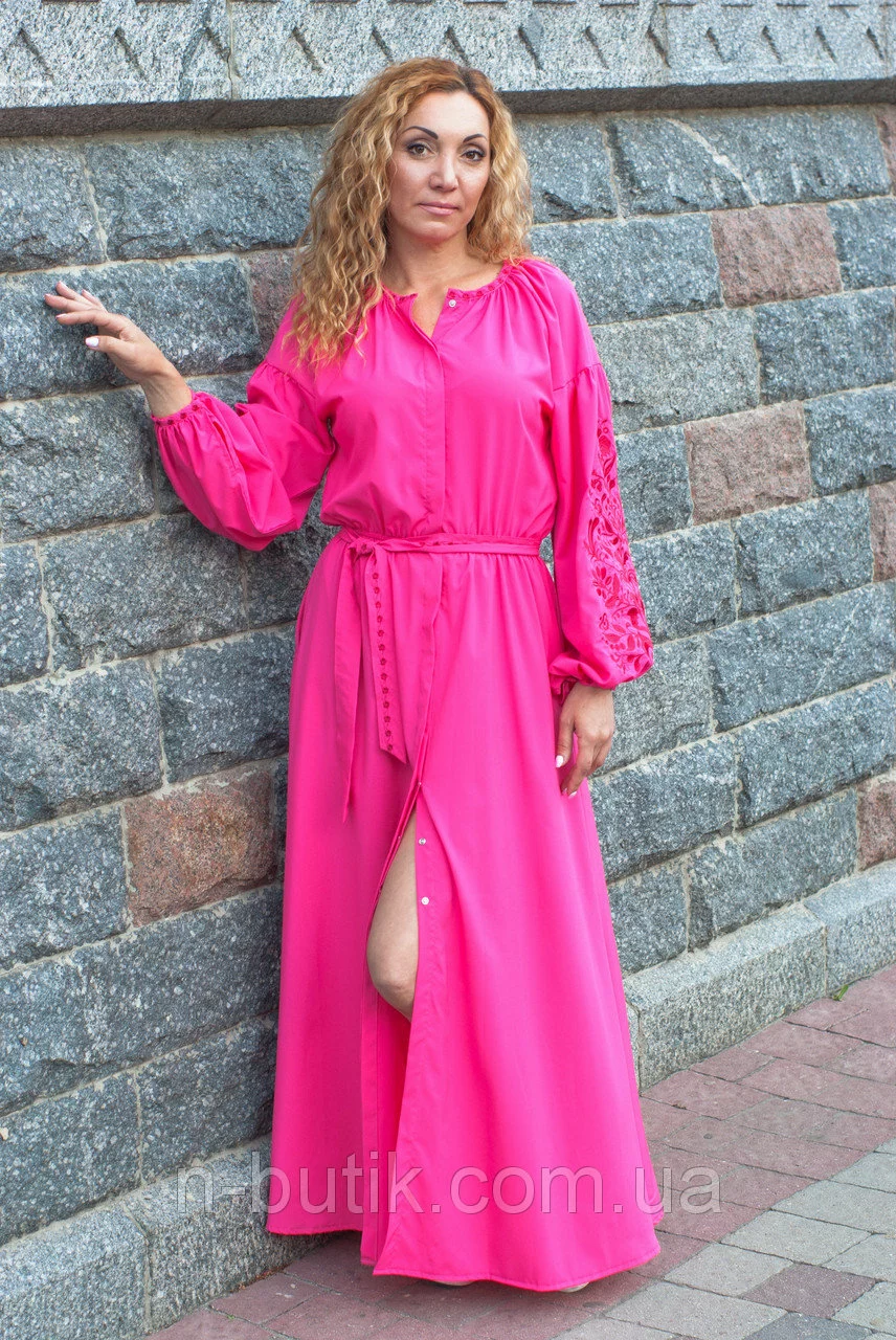 Длинное розовое платье с вышивкой Дерево жизни