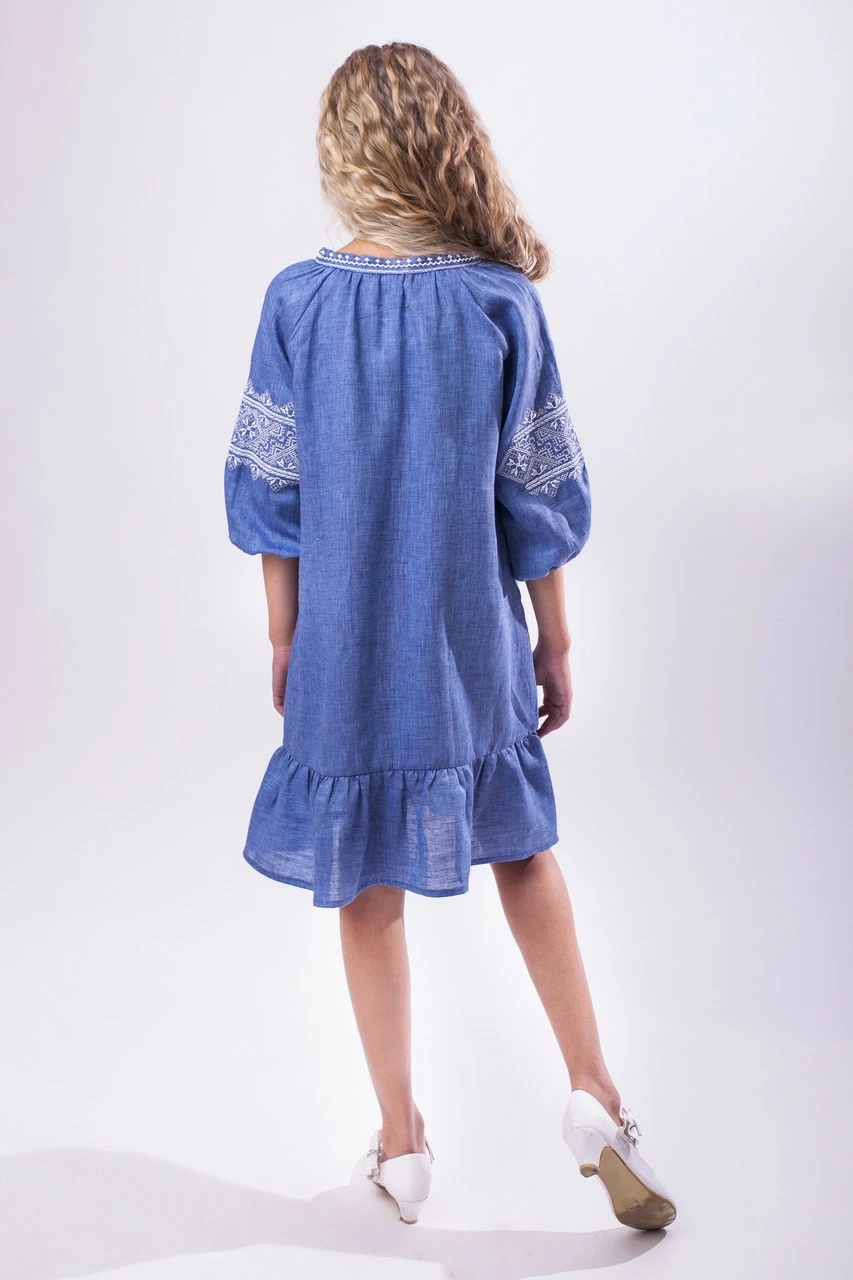 украшенное горизонтальной оборкой на юбке и гармонично выполненной