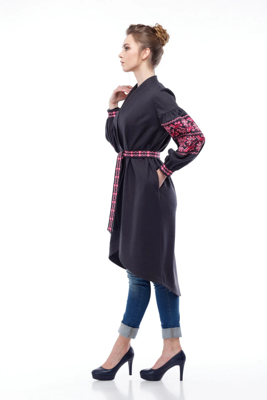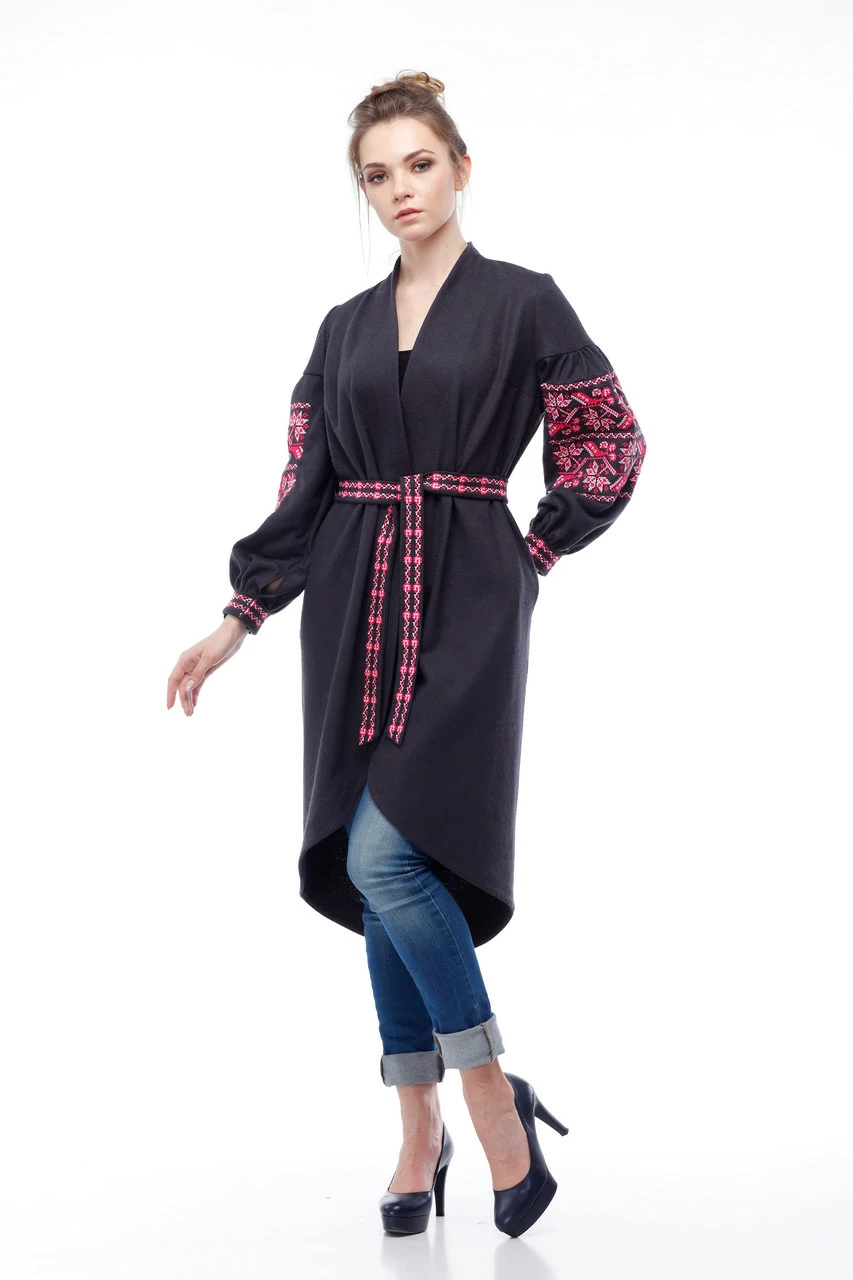 Модель кардигана на запах с вышитым поясом в комплекте придает образу роскошь и элегантность, выполнена из мягкого и приятного материала
