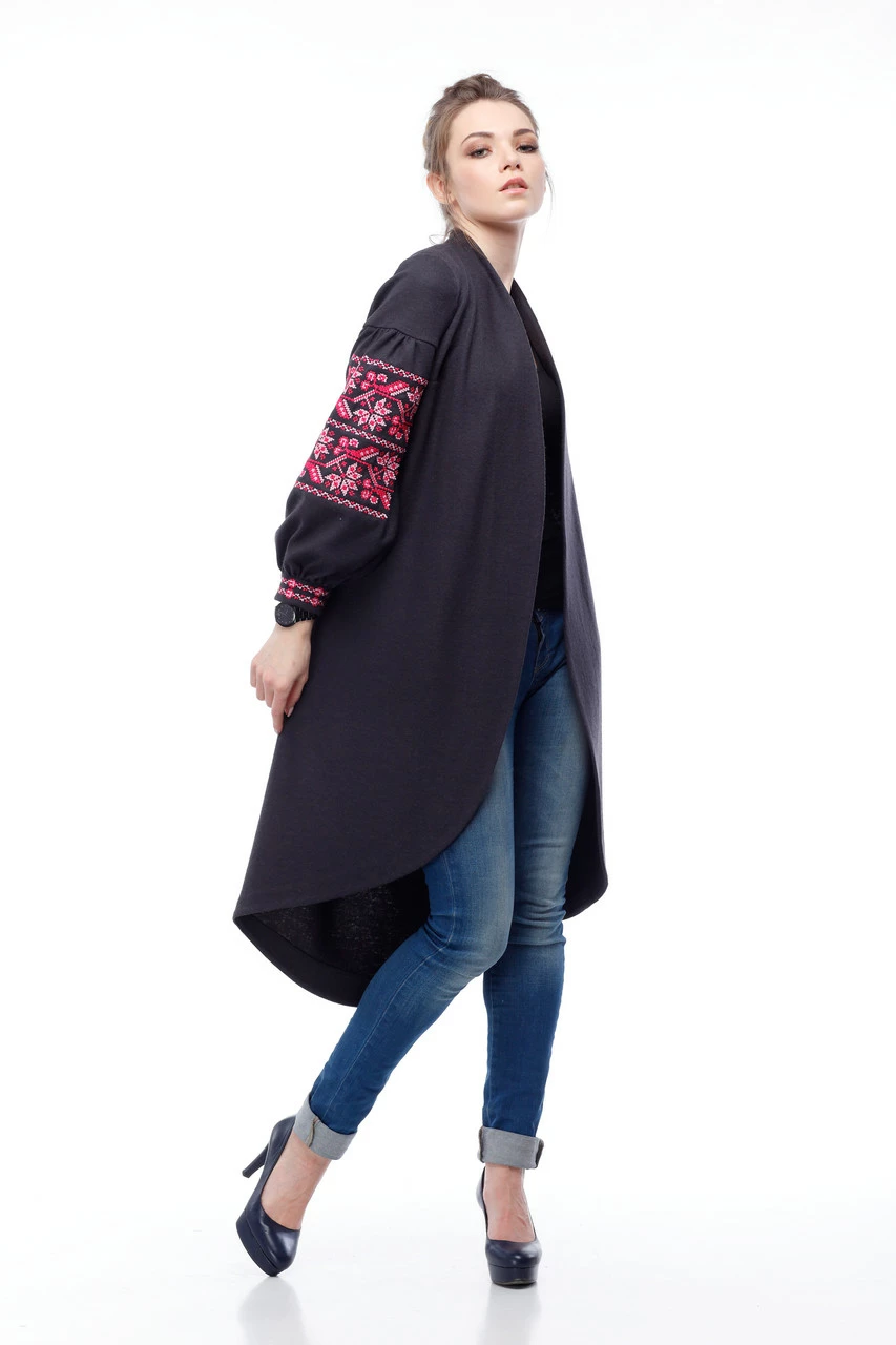 Кардиган серый с вышивкой "Ломаная Ветка"