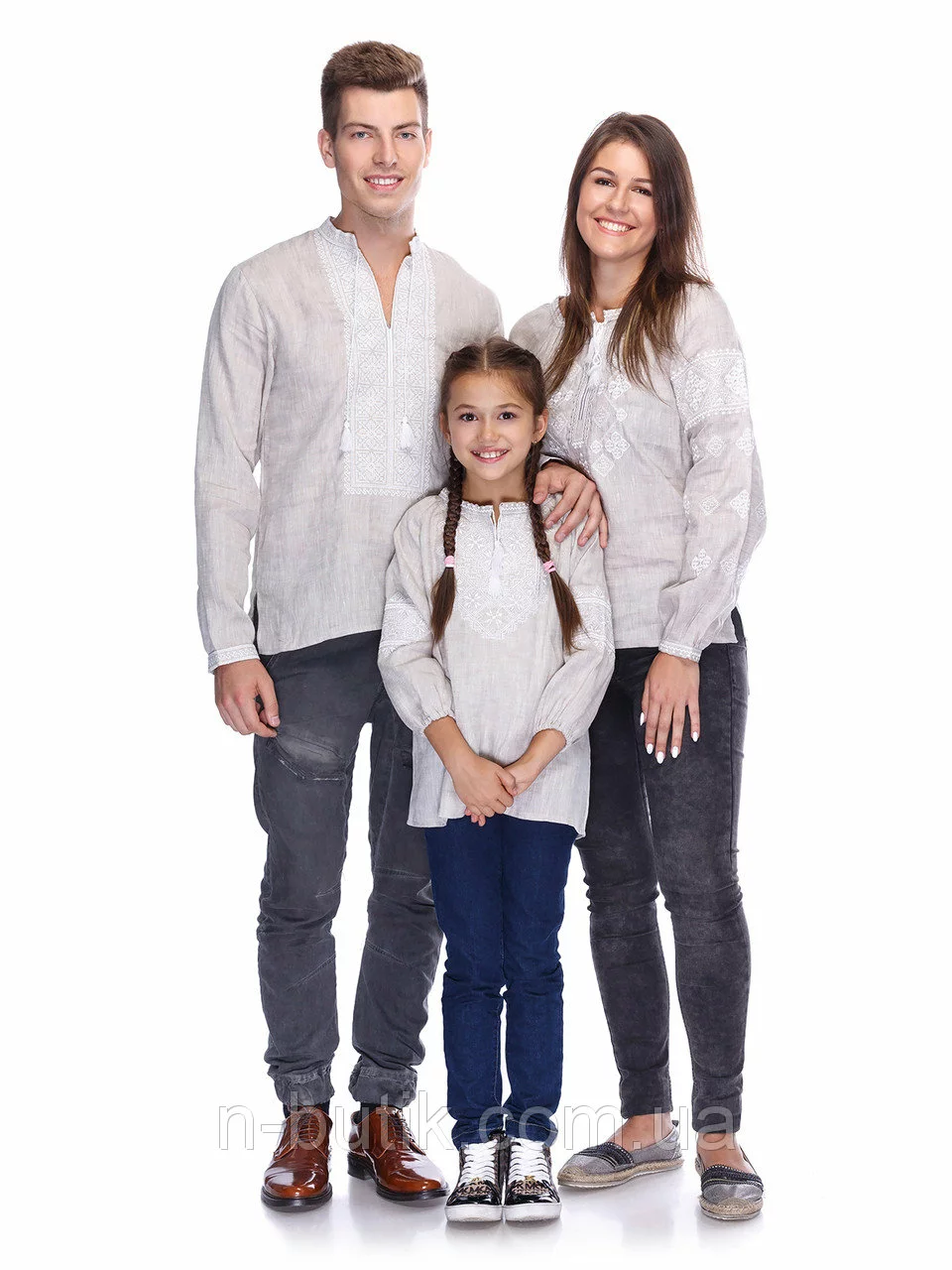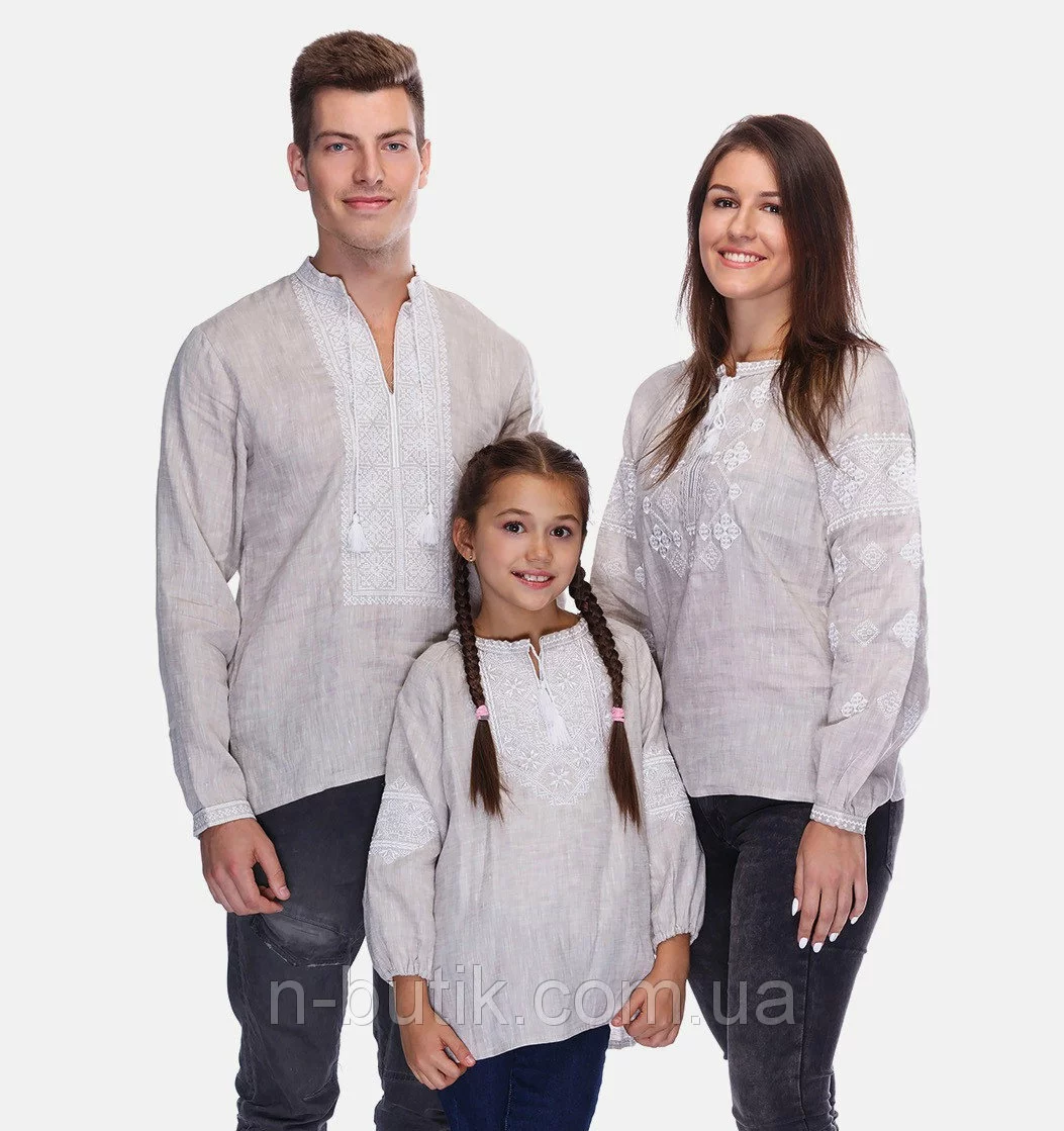 Комплект вышиванок для всей семьи из небеленого льна
