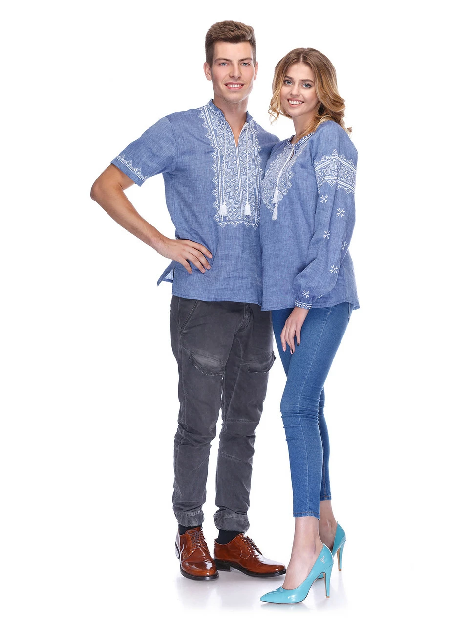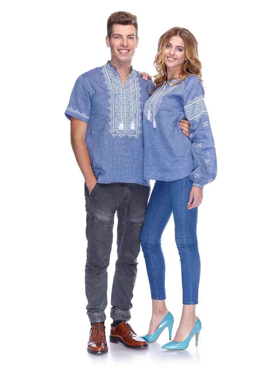Парный комплект джинсовых вышиванок