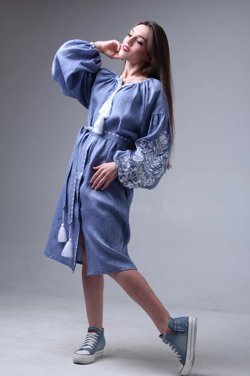 Платье с вышивкой Дерево жизни в стиле джинс 52