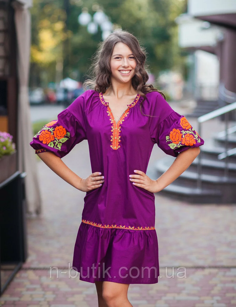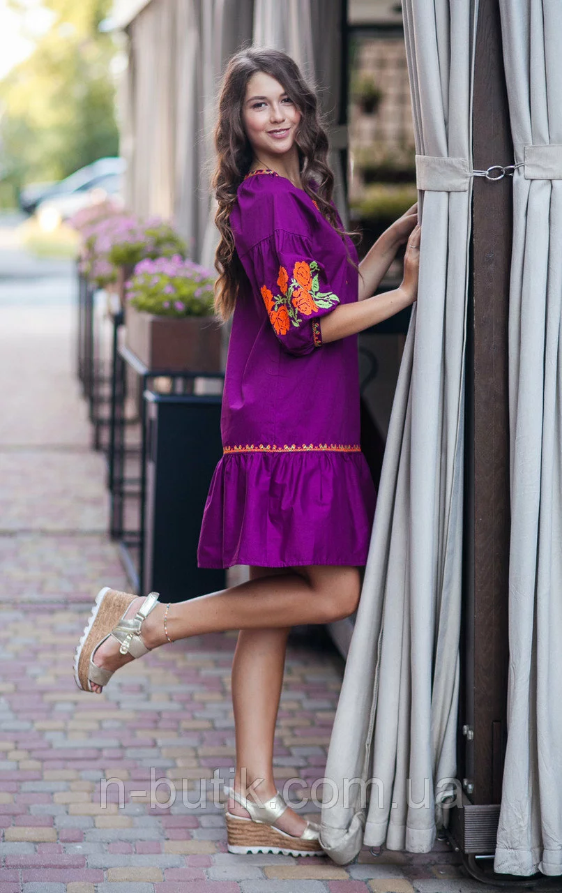 Платье свободного кроя с вышивкой