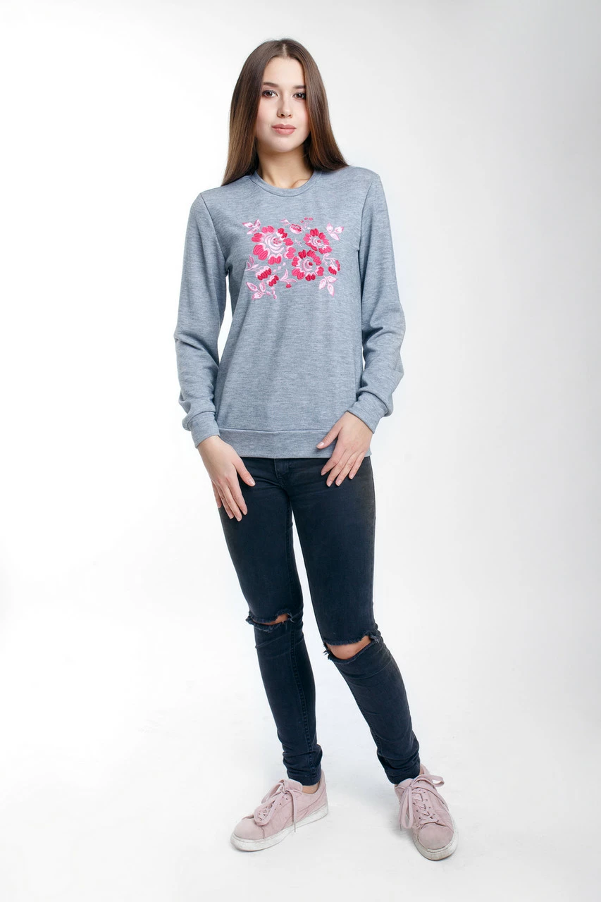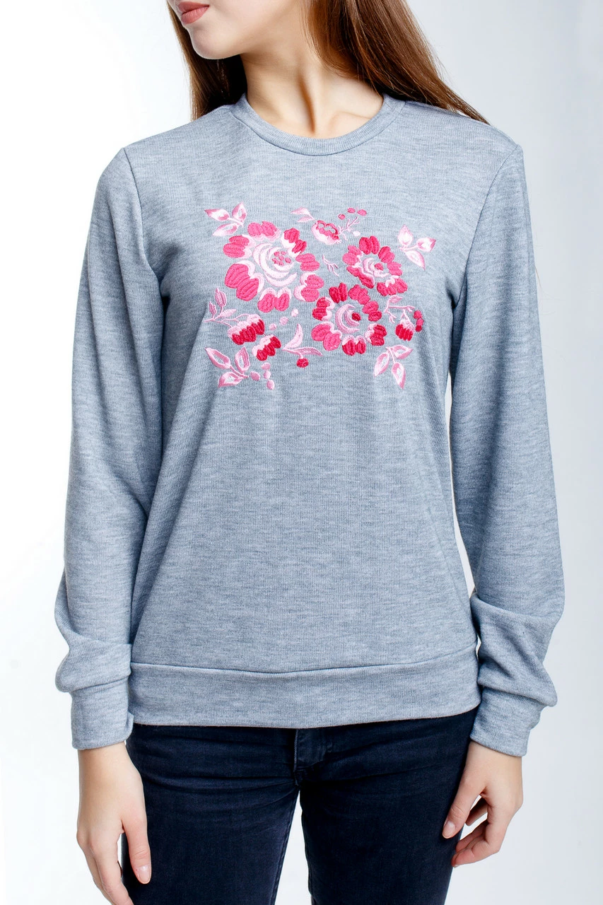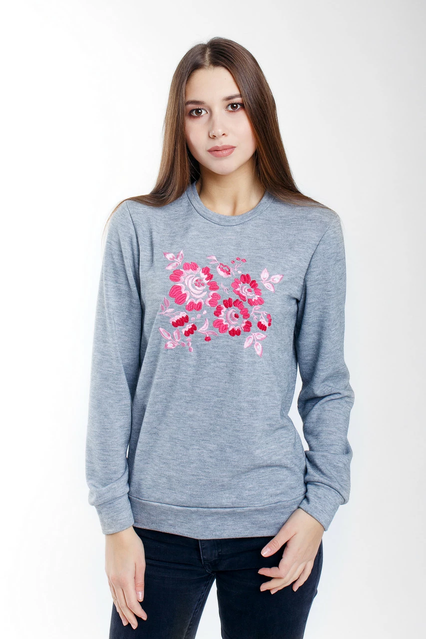 Серый свитшот для женщин с вышивкой
