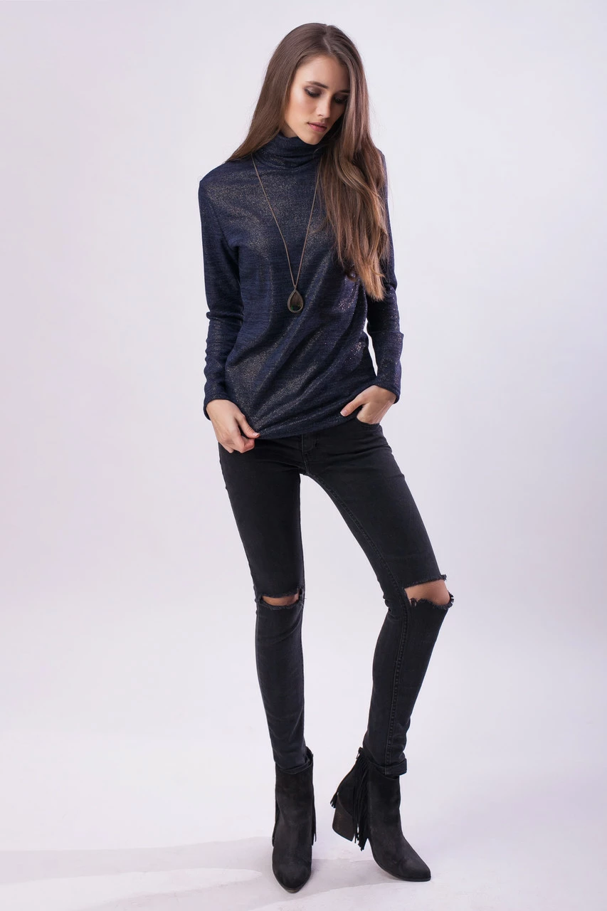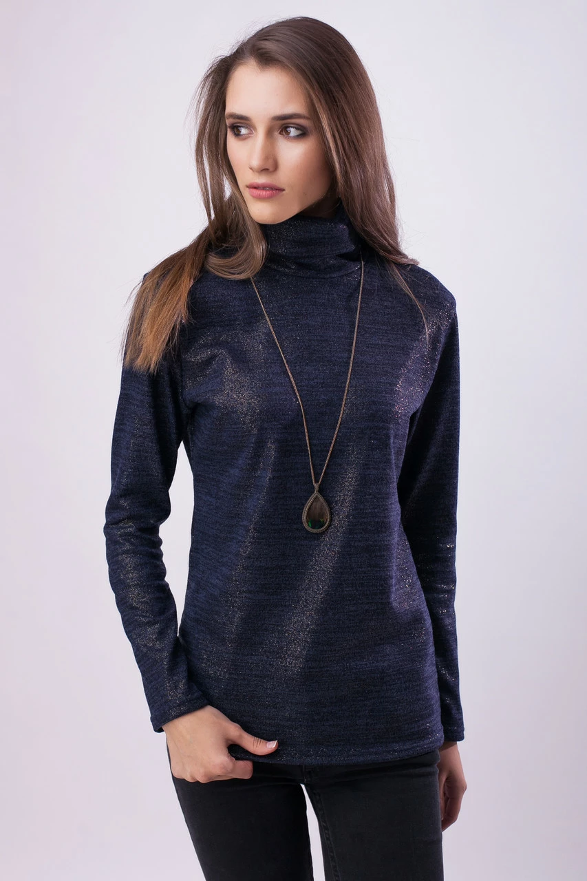 ?зысканная элегантная водолазка с синего трикотажа с дополнением люрекса
