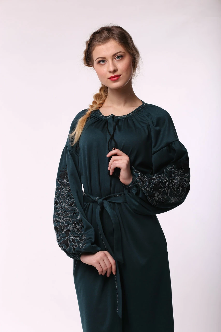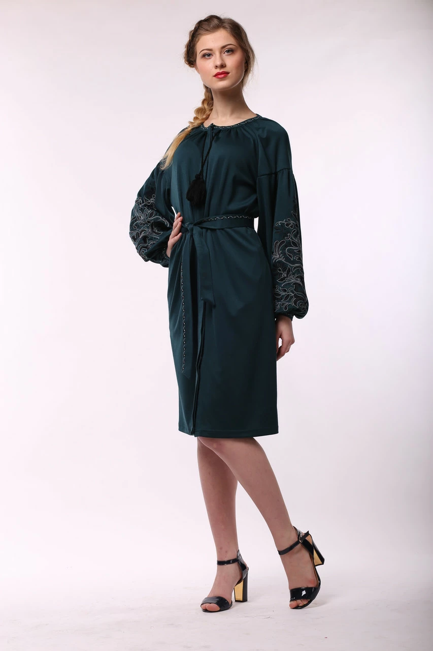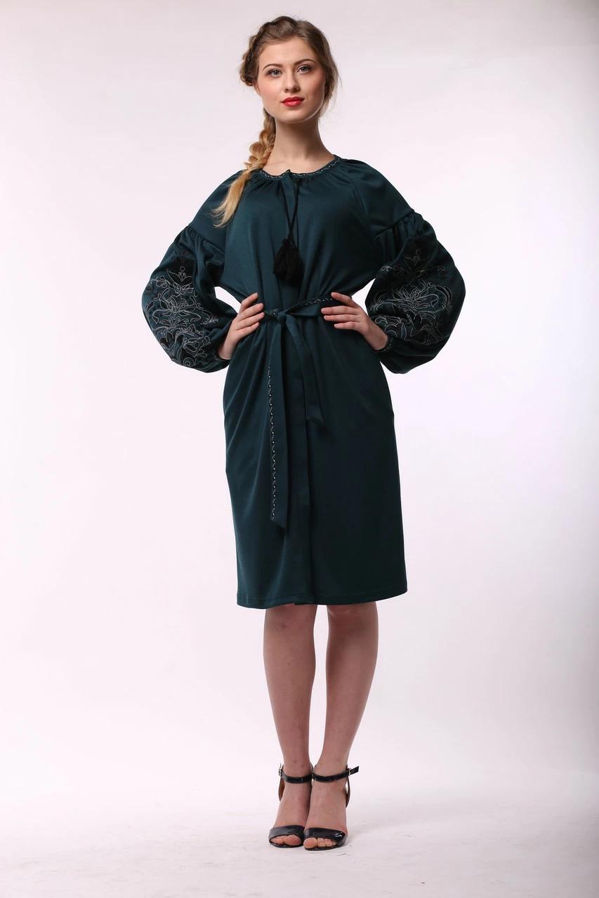 Зеленое трикотажное платье с вышивкой Дерево жизни