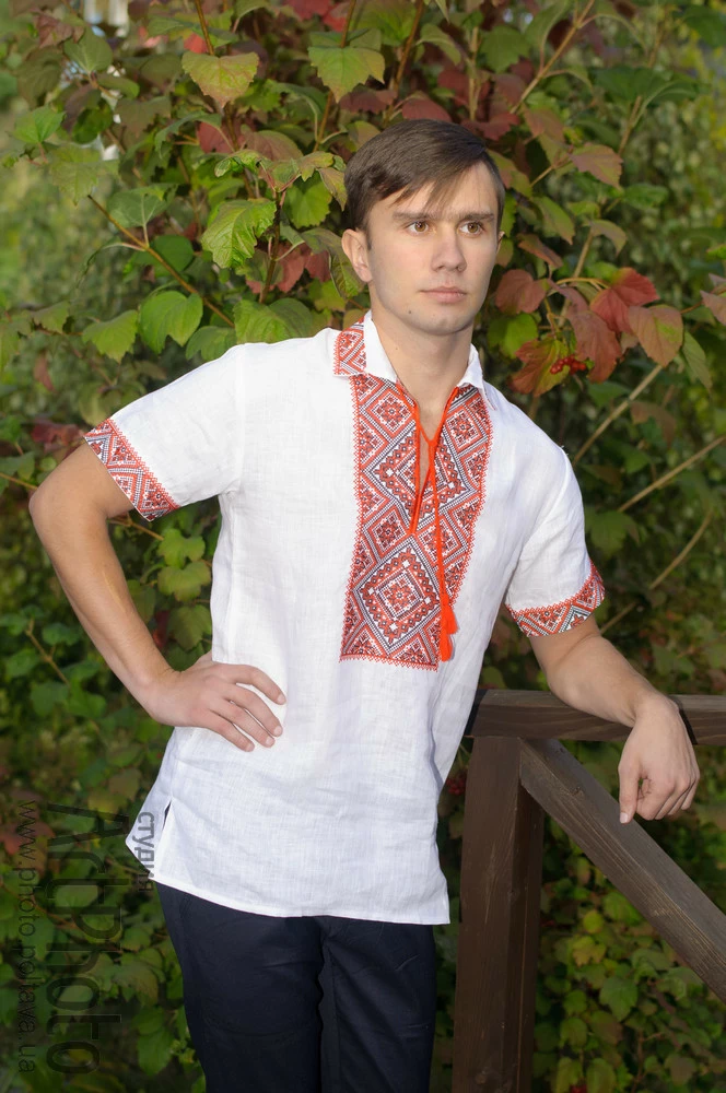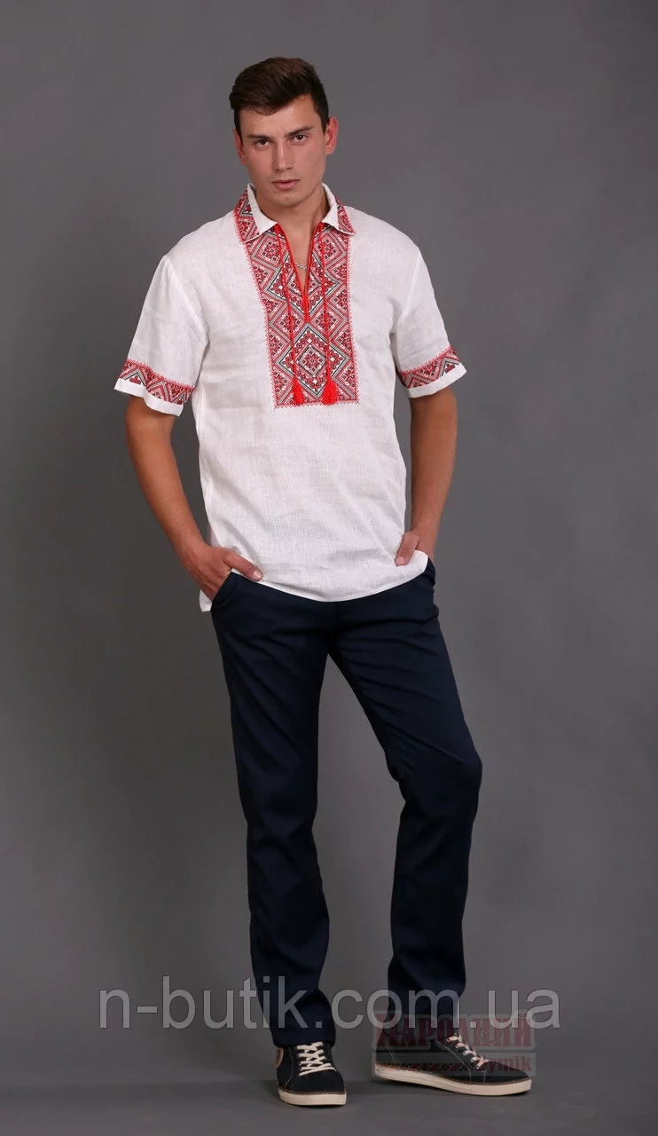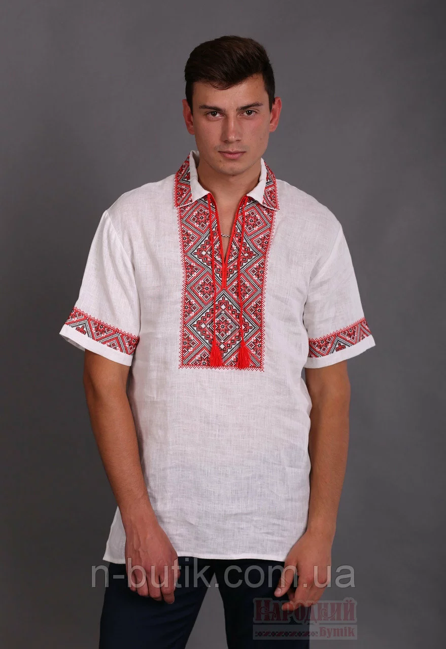Вышиванка мужская с коротким рукавом изготовлена из натурального