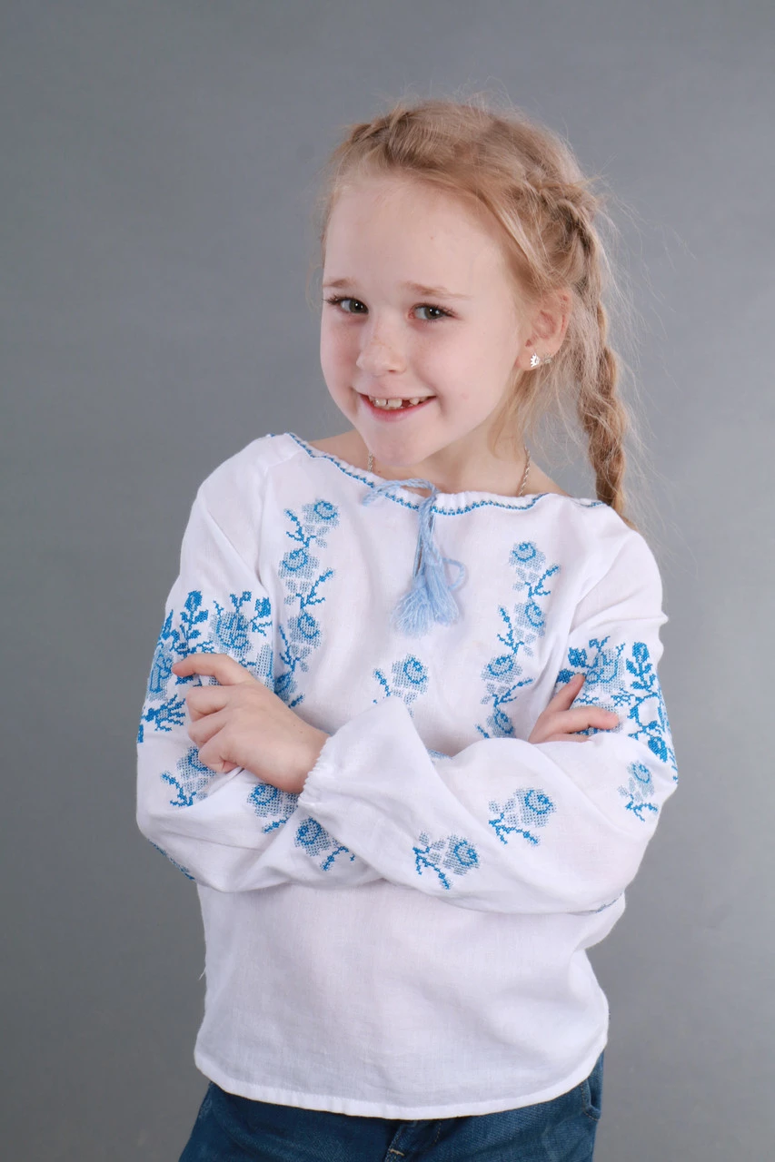 Вышитая сорочка для девочки (голубая вышивка) 140, Украина