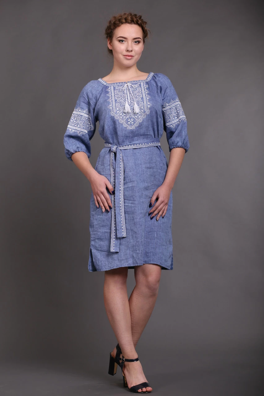 Вышитое платье Твори мир (цвет - джинс) 44