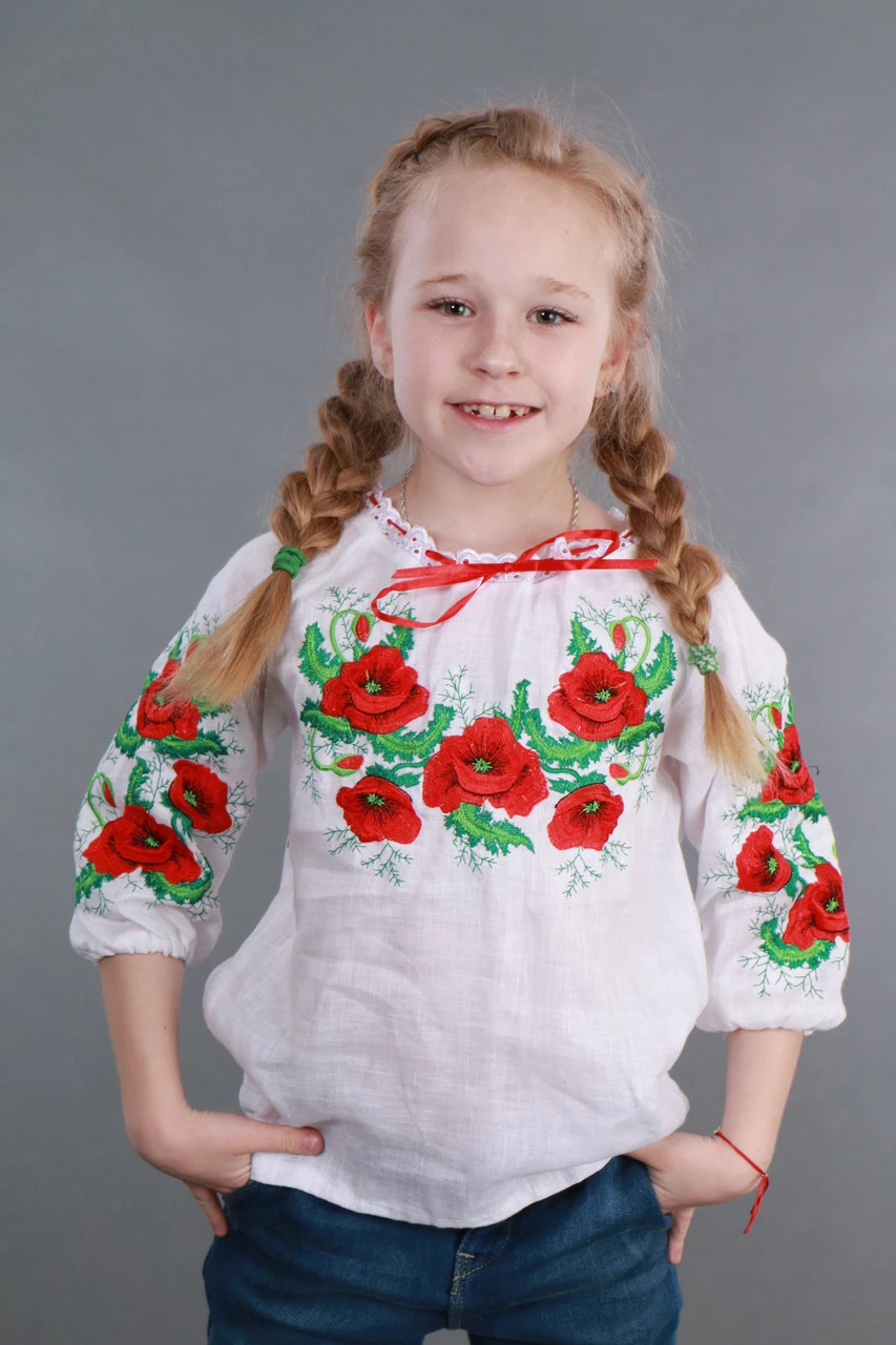Вышиванка для девочки "Мак и Укроп" 152, домот