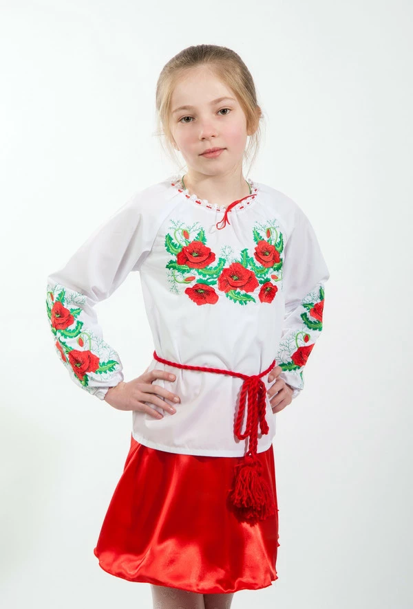 Вышиваночка для девочки Мак с укропом украшена традиционной