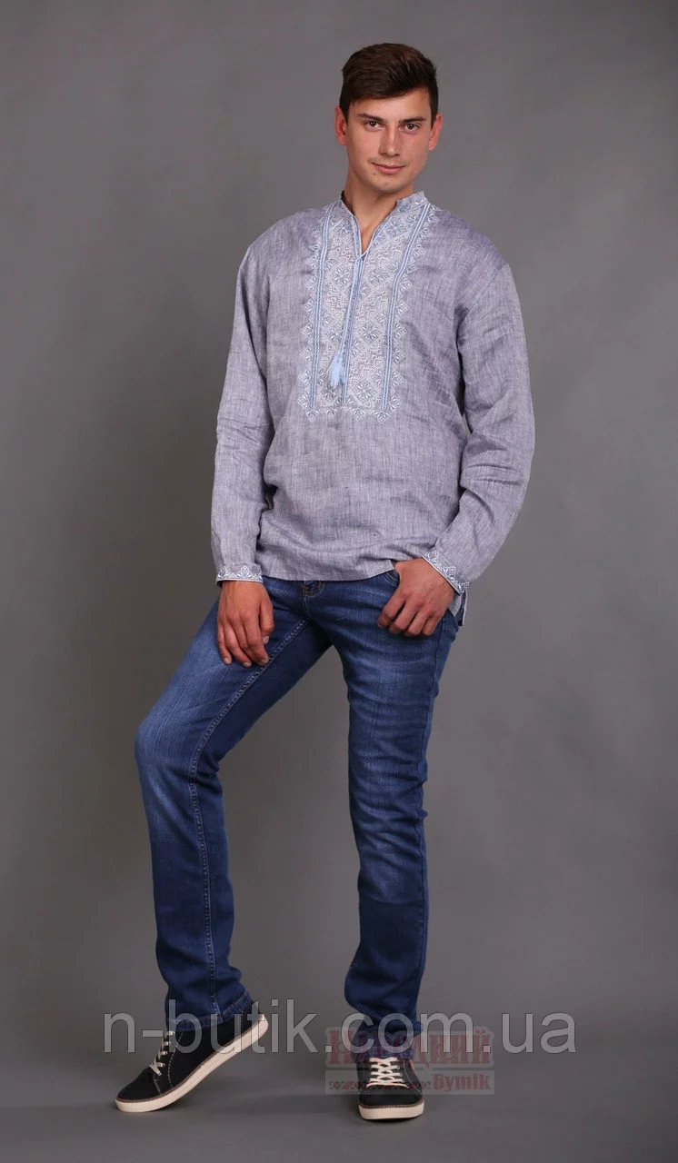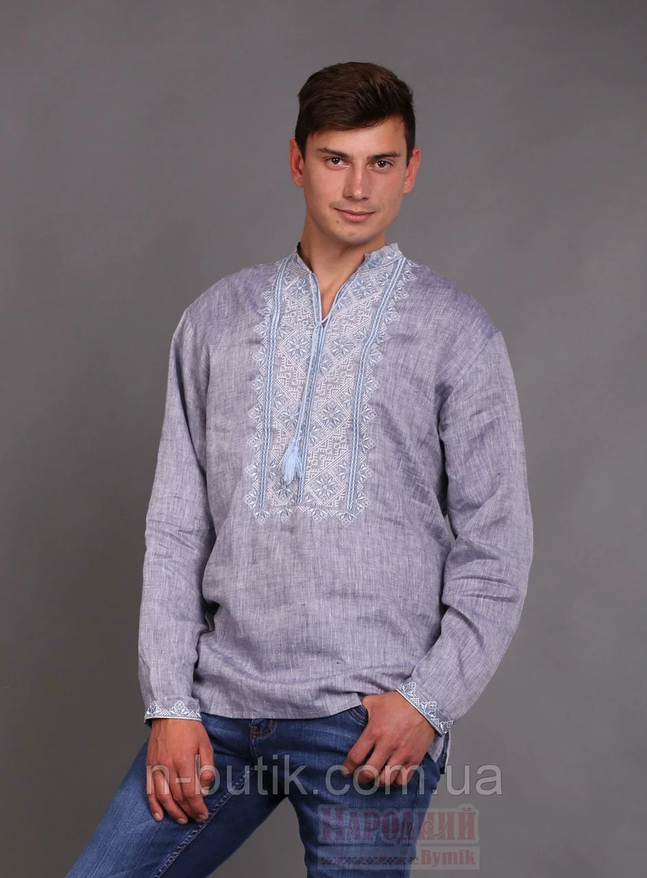 Вышиванка для мужчин с длинным рукавом и голубой вышивкой