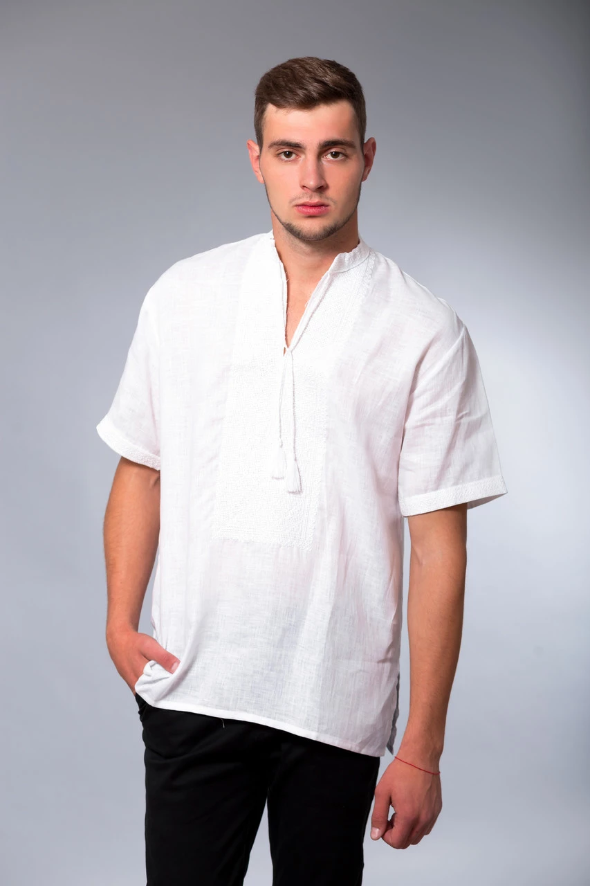 Вышиванка мужская. Белым по белому, короткий рукав 42, Украина