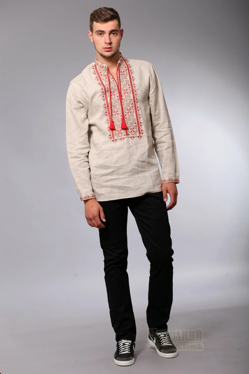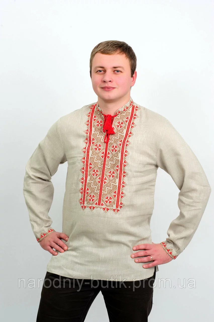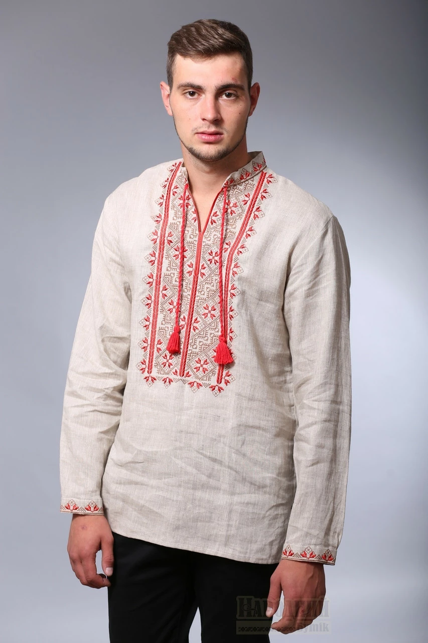 Мужская вышиванка из небеленого льна