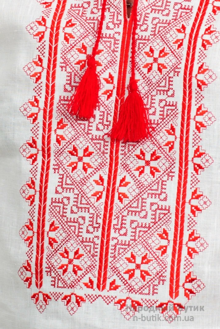 Мужская вышиванка льняная, красная вышивка