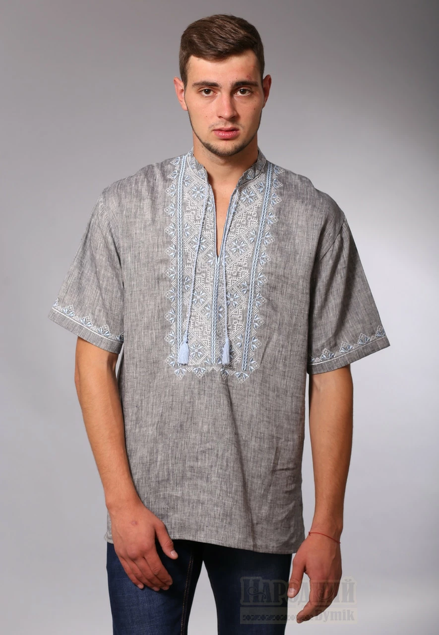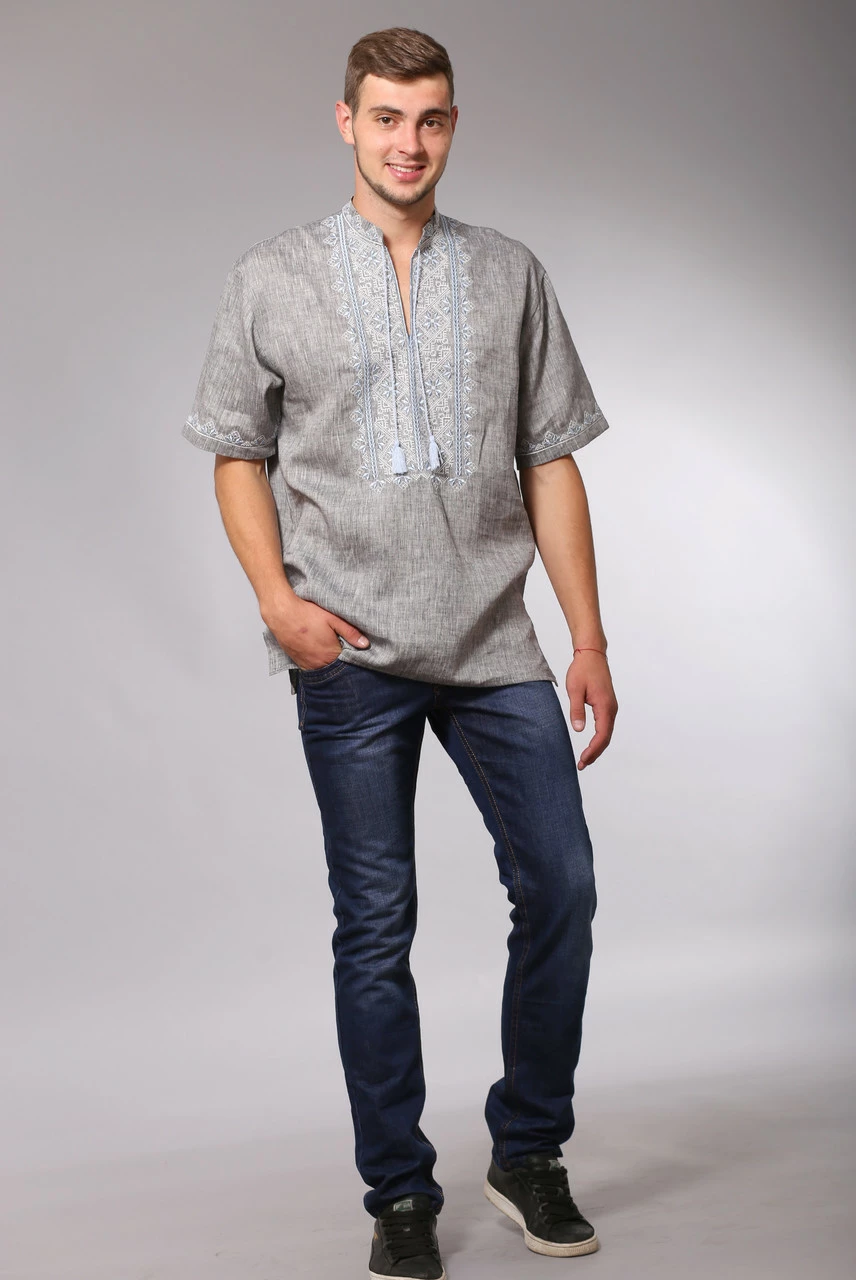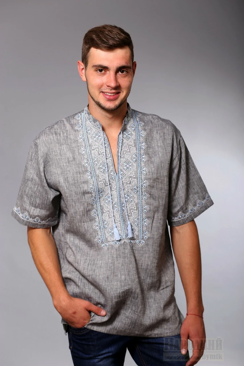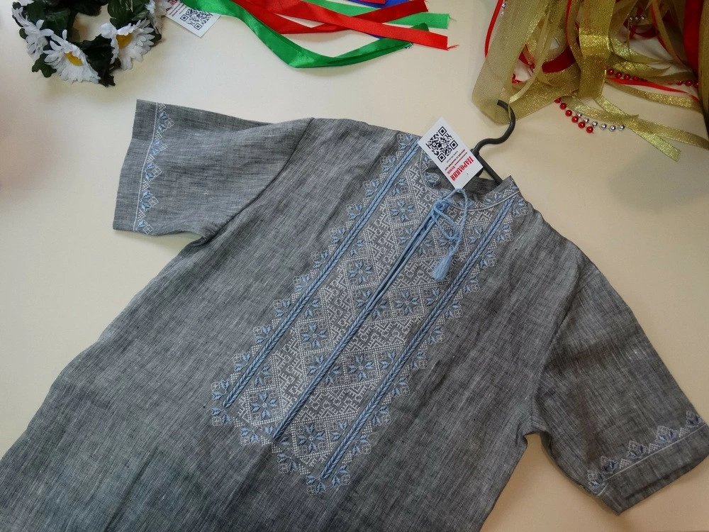 Материал вышиванки - 100% лен (расцветка серый джинс)