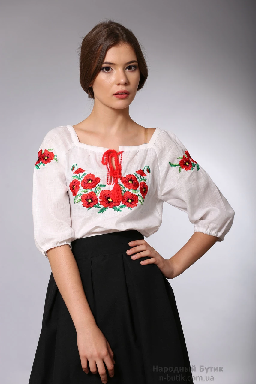 Красивая женская вышиванка с красными маками