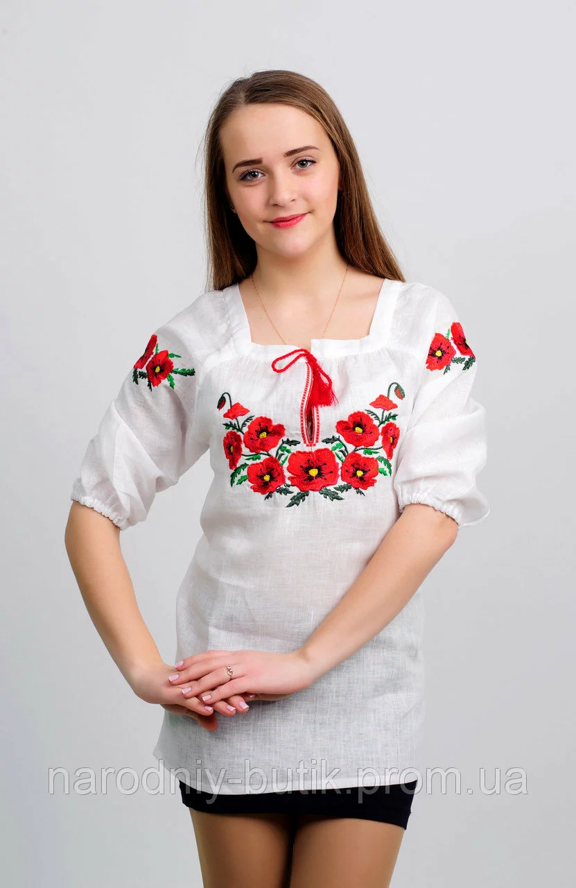 Женская вышиванка "Мак гладь" сшита из легкого натурального льна и