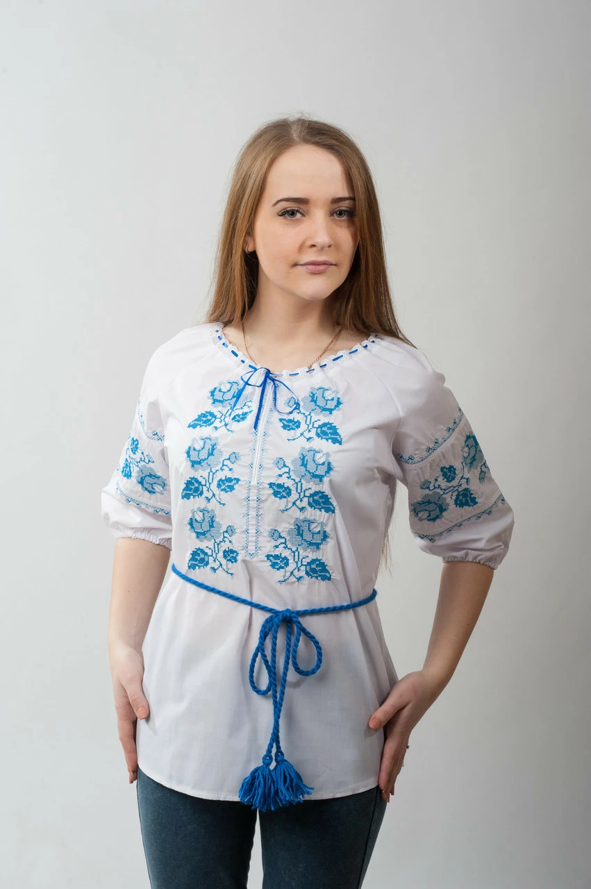 Купить вышиванку с розами (голубая вышивка) можно в любом размере,