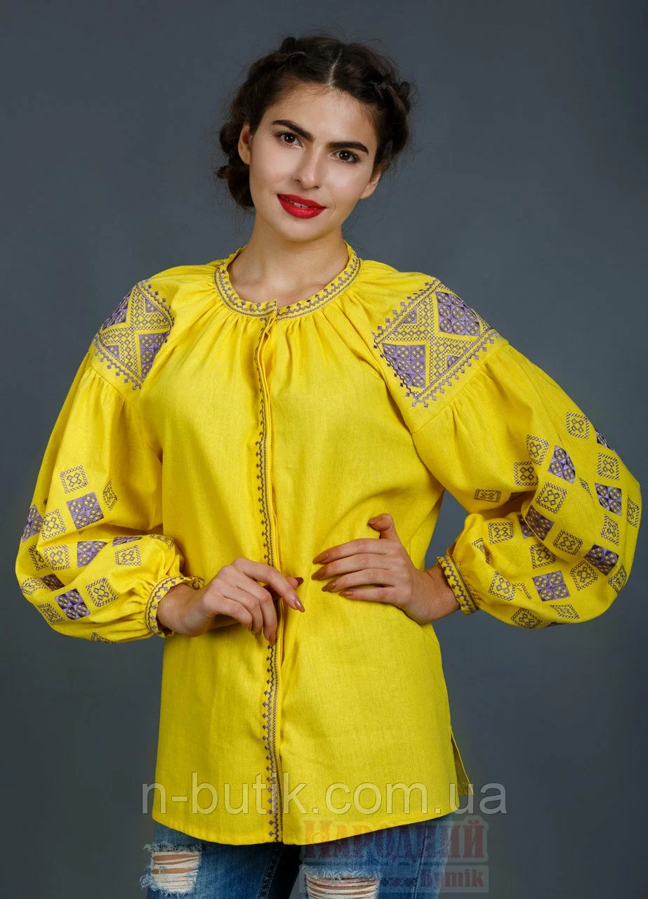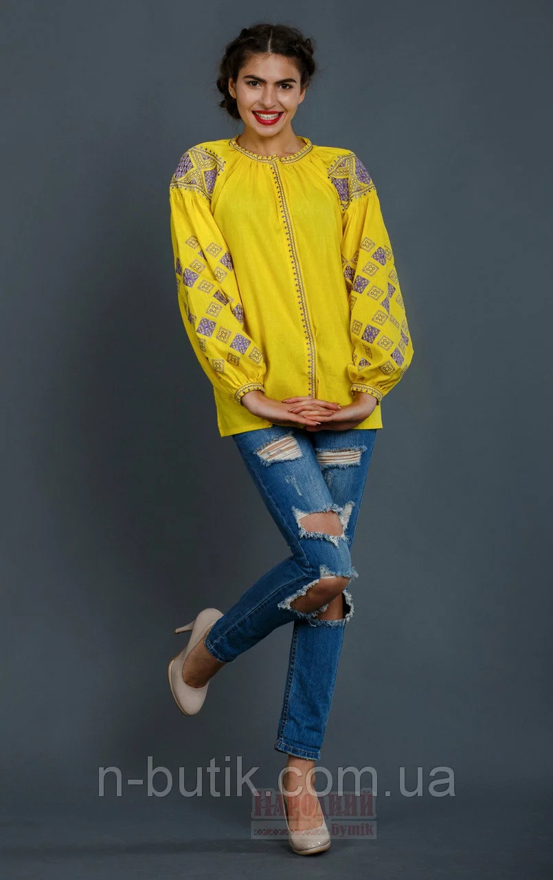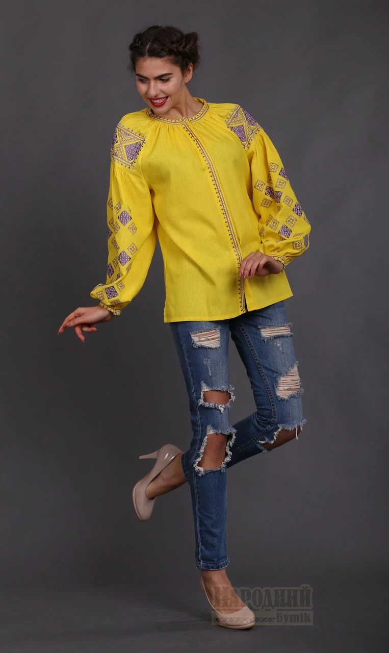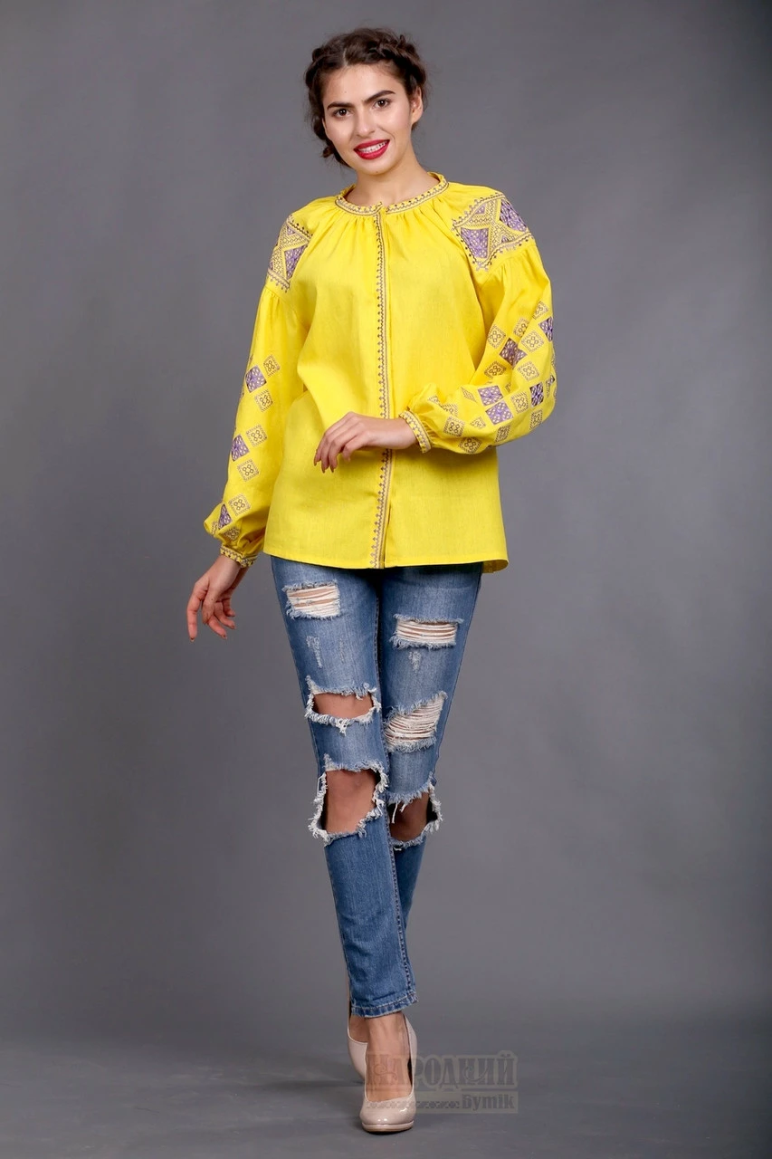 Очаровательная женская вышиванка желтого цвета в Бохо -стиле