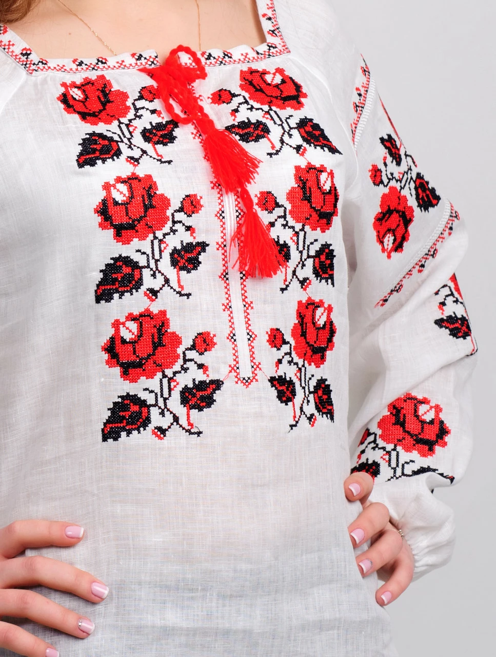 Эта модель вышиванки с узором из роз выполнена в традиционном