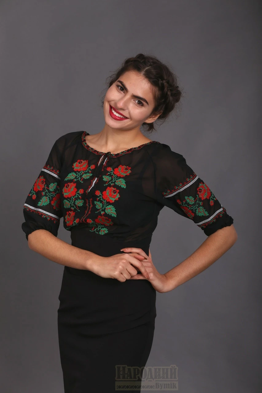 Женская вышиванка,черный шифон 52
