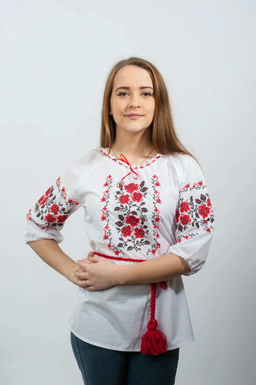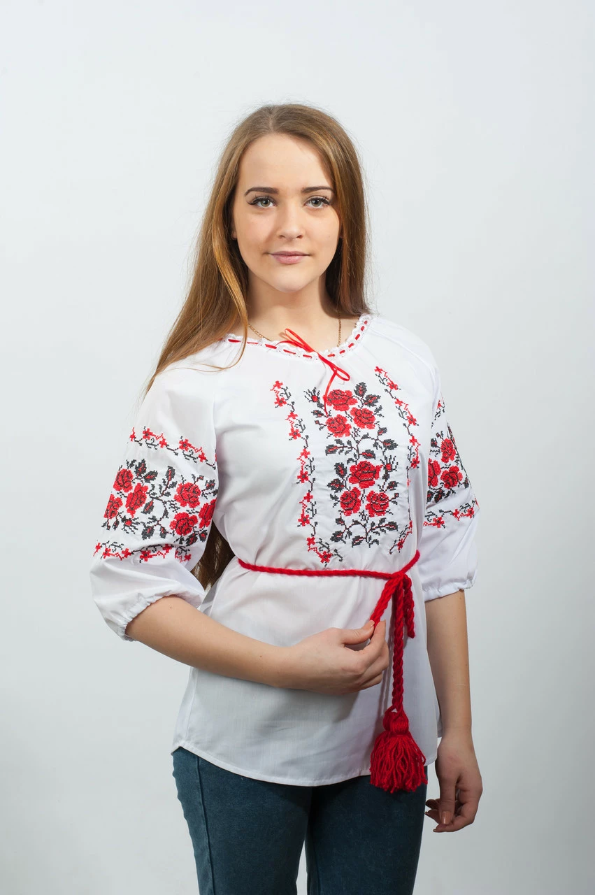 Женская вышиванка "Рушничок" с флористическим орнаментом из роз.