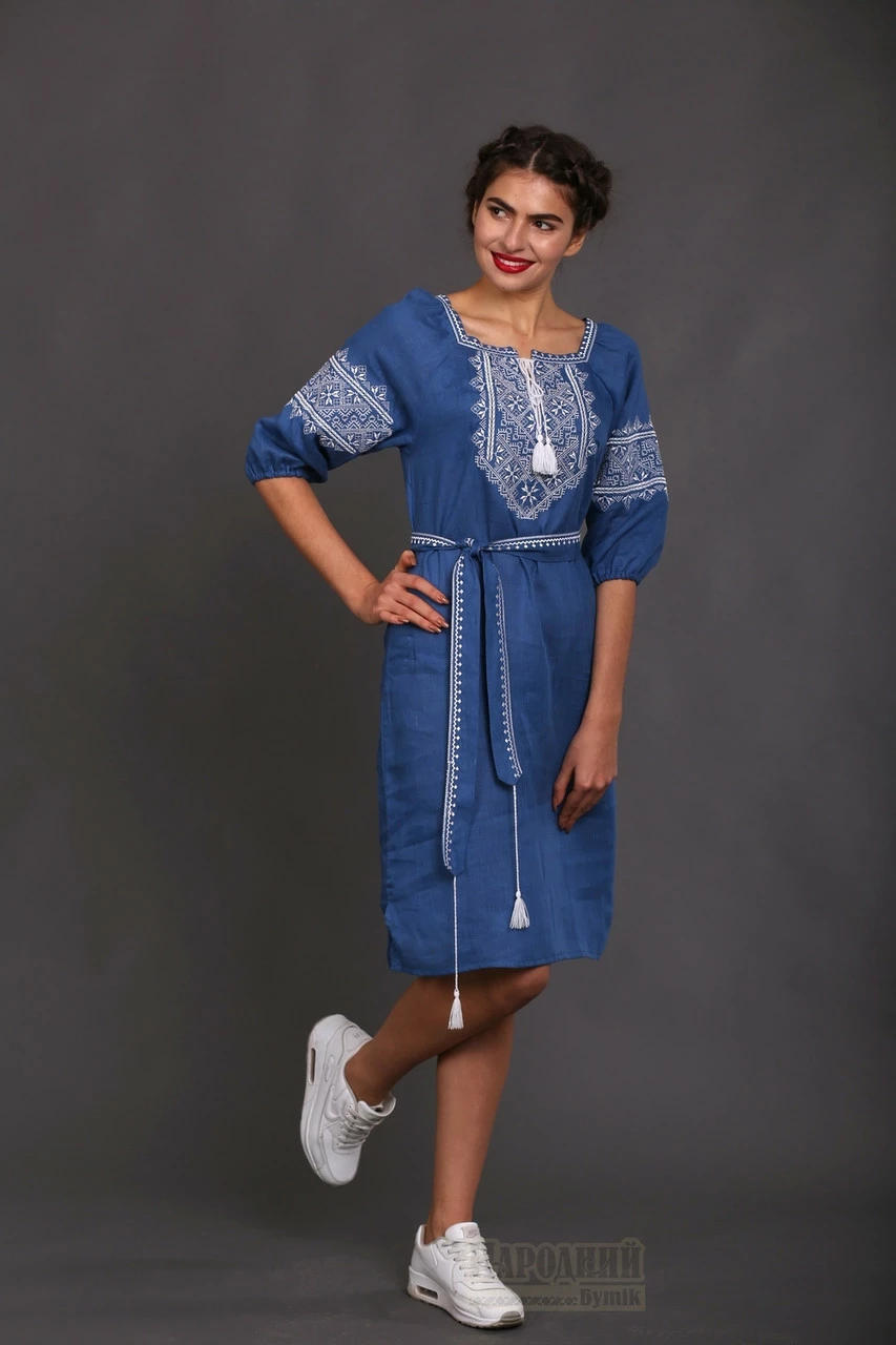 Женское платье с вышивкой Твори мир, цвет индиго 44