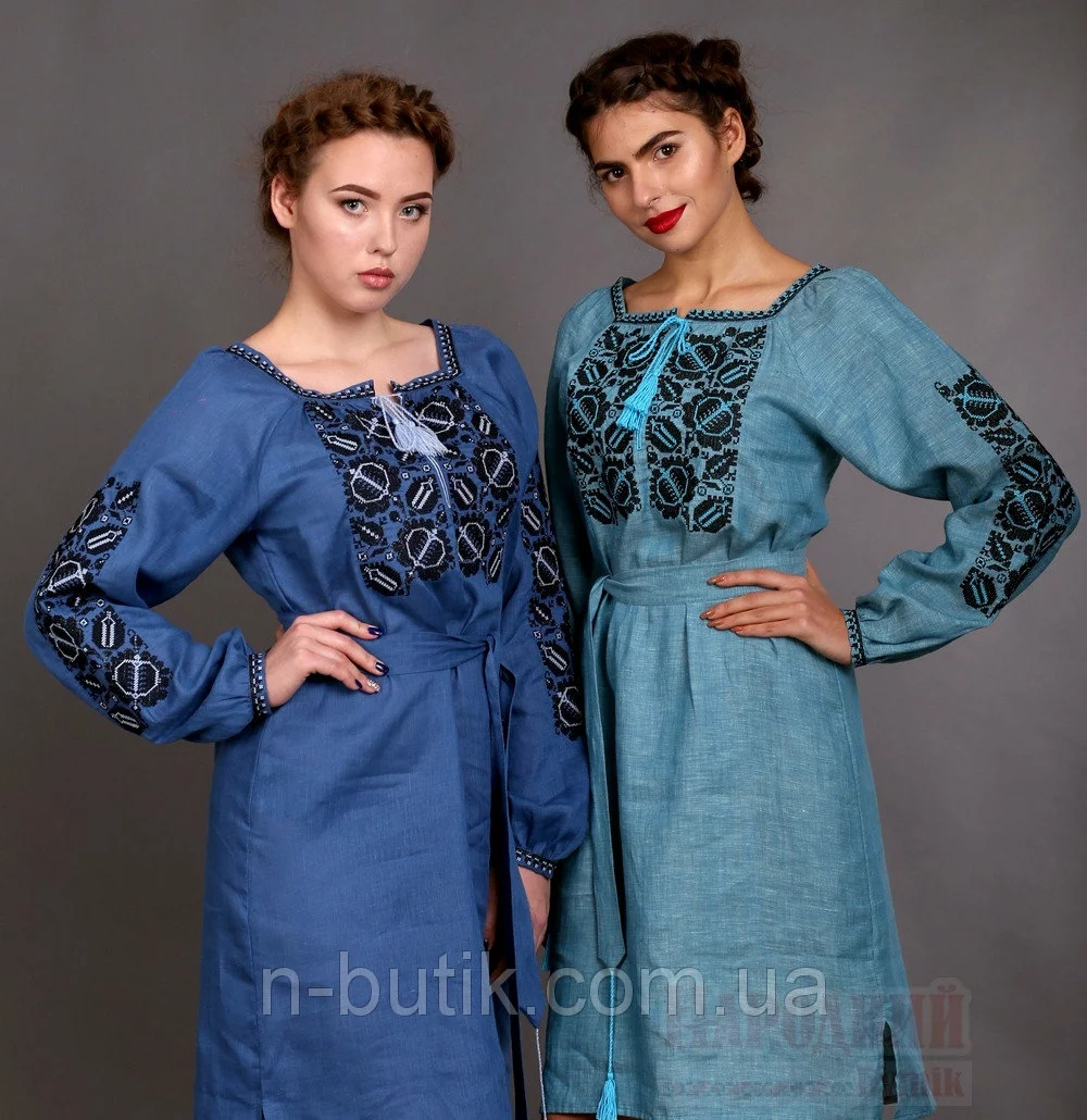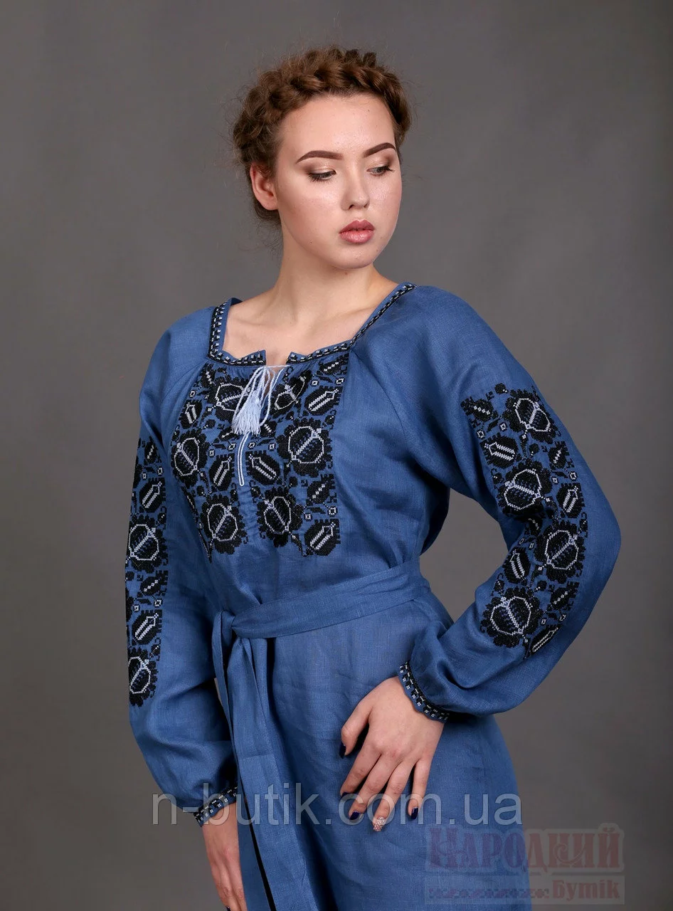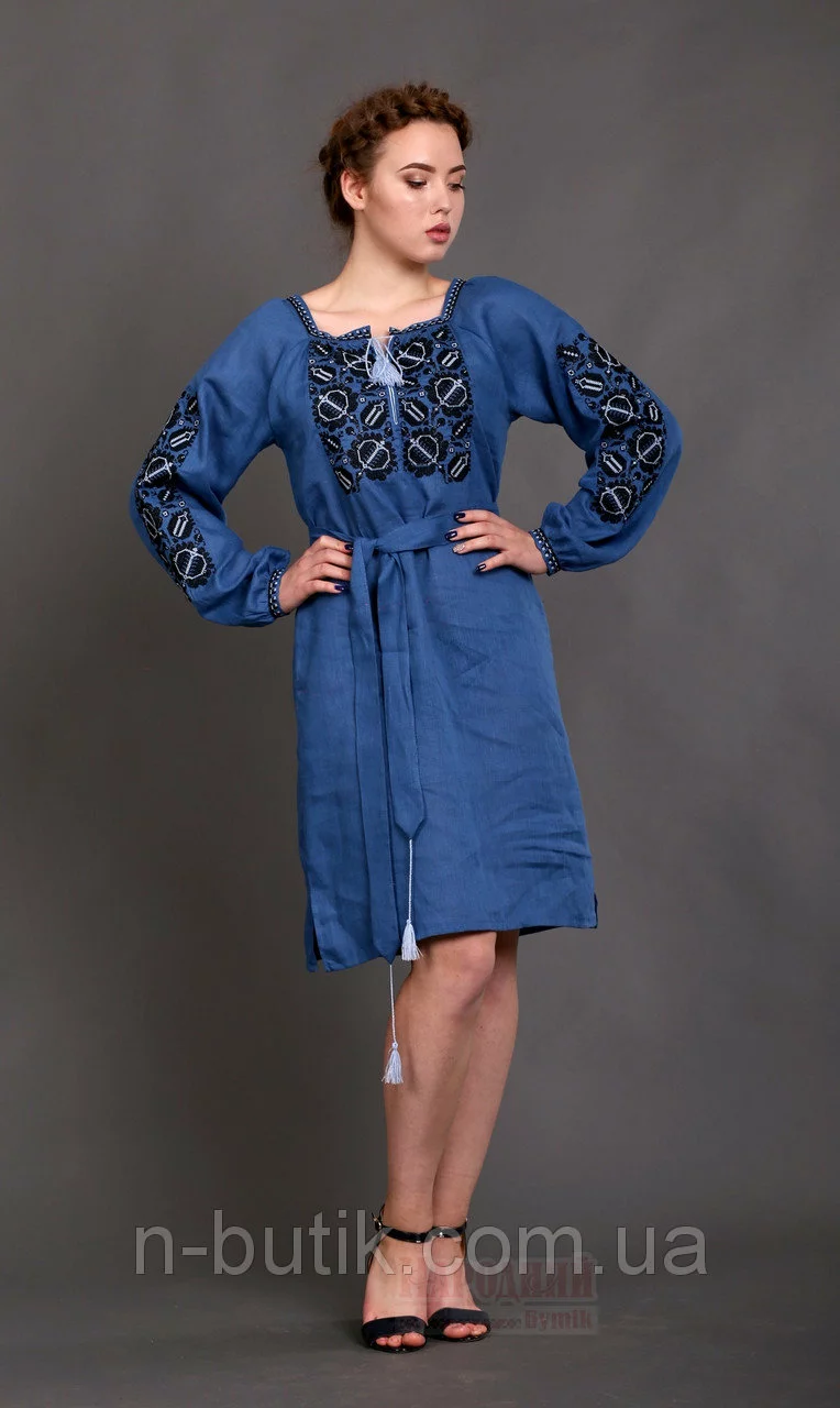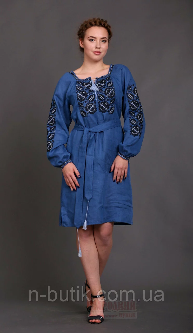 Женское вышитое платье Этно (цвет индиго)